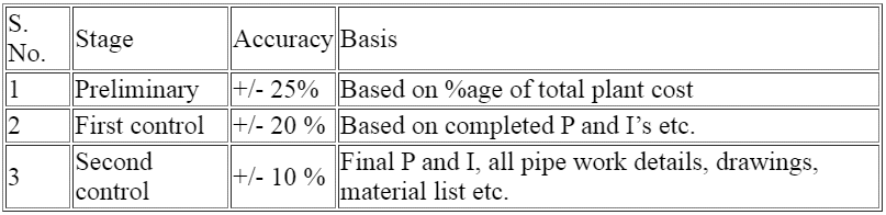 सामान्यतः, पाइपलाइन सिस्टमची तपशीलवार रचना सुरू होण्यापूर्वीच, प्रकल्पाच्या डिझाइन टप्प्यात वेळ आणि भांडवल गुंतवणे सुरू ठेवण्याची व्यवहार्यता निश्चित करण्याच्या उद्देशाने, परिमाणानुसार खर्चाचा अभ्यास केला जाईल.