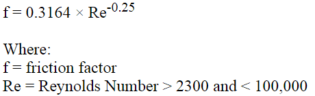 जर रेनॉल्ड्स क्रमांक २३०० आणि ४००० च्या दरम्यान असेल, तर प्रवाह हा संक्रमण आहे आणि ४००० पेक्षा जास्त प्रवाह हा अशांत आहे. २३०० पेक्षा जास्त आणि १००,००० पेक्षा कमी रेनॉल्ड्स क्रमांकांसाठी घर्षण घटक मोजण्यासाठी खालील सूत्र वापरले जाऊ शकते: