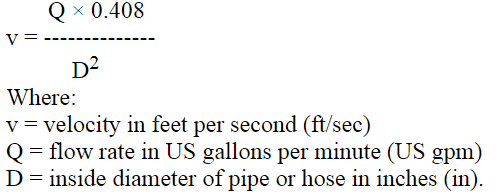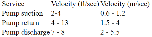 कंडक्टरमधून (पाईप, ट्यूब किंवा नळी) हायड्रॉलिक द्रवपदार्थाचा वेग प्रवाह दर आणि क्रॉस सेक्शनल क्षेत्रावर अवलंबून असतो. हायड्रॉलिक सिस्टीममध्ये पाईप्स आणि नळींमधून शिफारसित द्रवपदार्थाचा वेग खालीलप्रमाणे आहे: