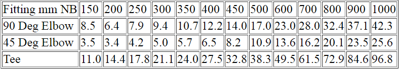 फिटिंग्जमधील दाब कमी होणे: फिटिंग्जमधील हेड लॉस हे सहसा पाईपच्या सरळ लांबीच्या बरोबरीने व्यक्त केले जाते जे खाली दाखवल्याप्रमाणे पाईपच्या सरळ रनमध्ये जोडले जाते. हा दृष्टिकोन बहुतेकदा हेझेन-विल्यम्स किंवा मॅनिंग समीकरणांसह वापरला जातो. हा दृष्टिकोन वेगवेगळ्या वेगांमुळे निर्माण होणारे अशांतता आणि त्यानंतरचे नुकसान विचारात घेत नाही.